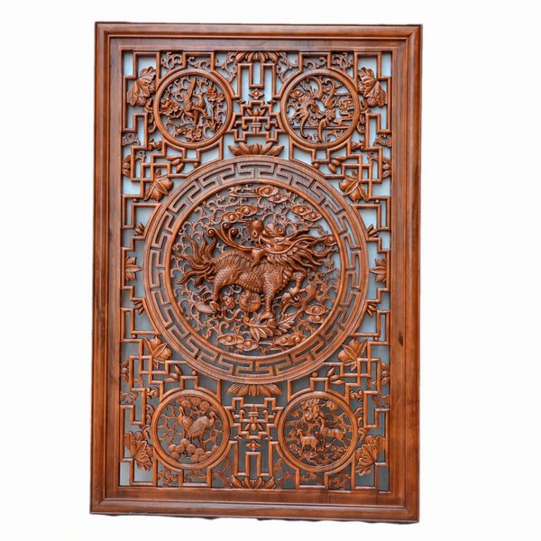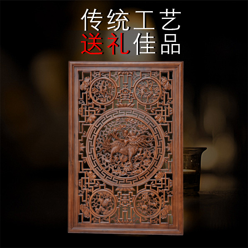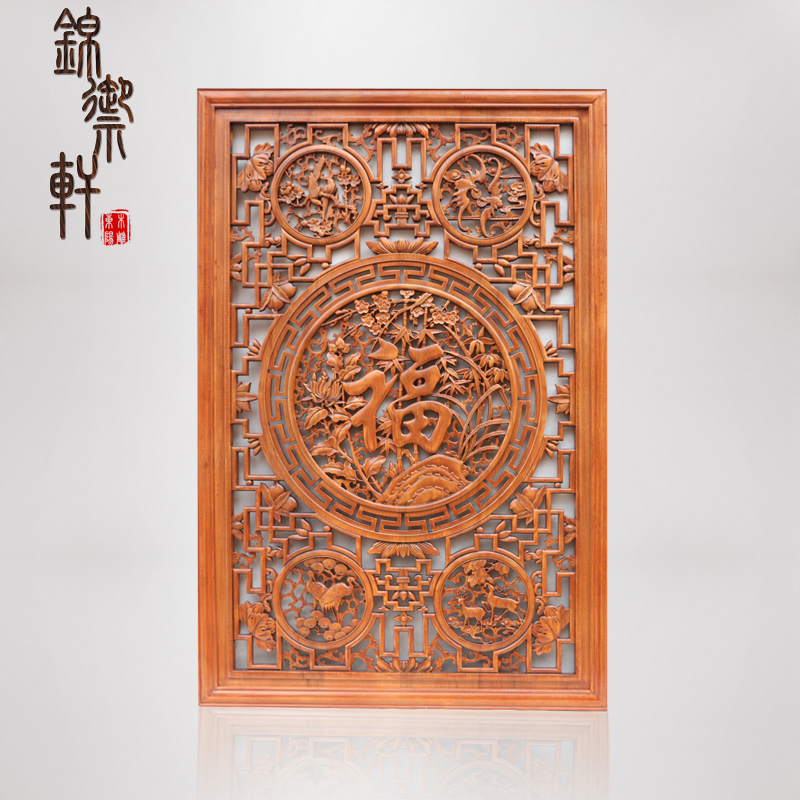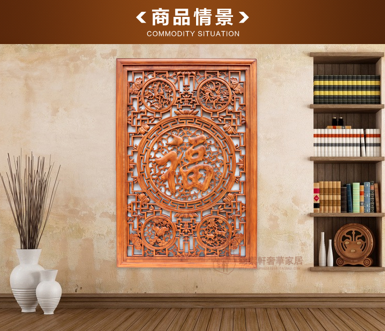 East Yang Wood Carving Pendant Chinese Style Engraving Background Wall Xuan Guan Partition Imitation Ancient Screen Solid Wood Living Room Fu Character Wall-mounted Screen