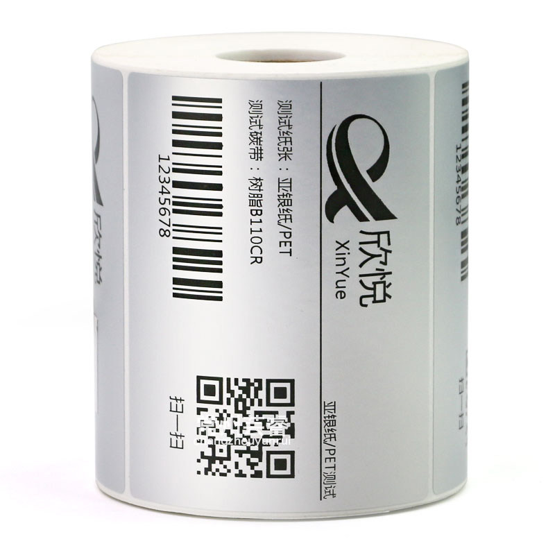 XinyueYa silver 80*50 barcode paper sheet 1000 pieces PET dumb silver sticker label paper can be customized