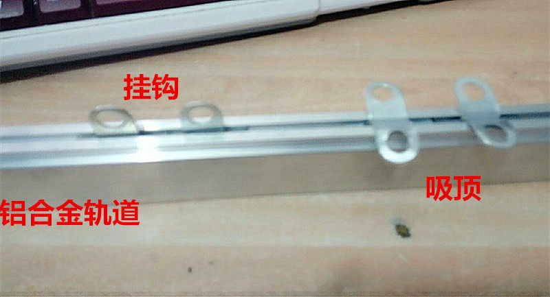 1 meter thick aluminum alloy track with a full set of accessories hooks, 4 choke plugs, 4 card cores, 4 density contact customer service, 1 meter ceiling aluminum alloy track, 3 ceiling pieces, 3 ceiling pieces