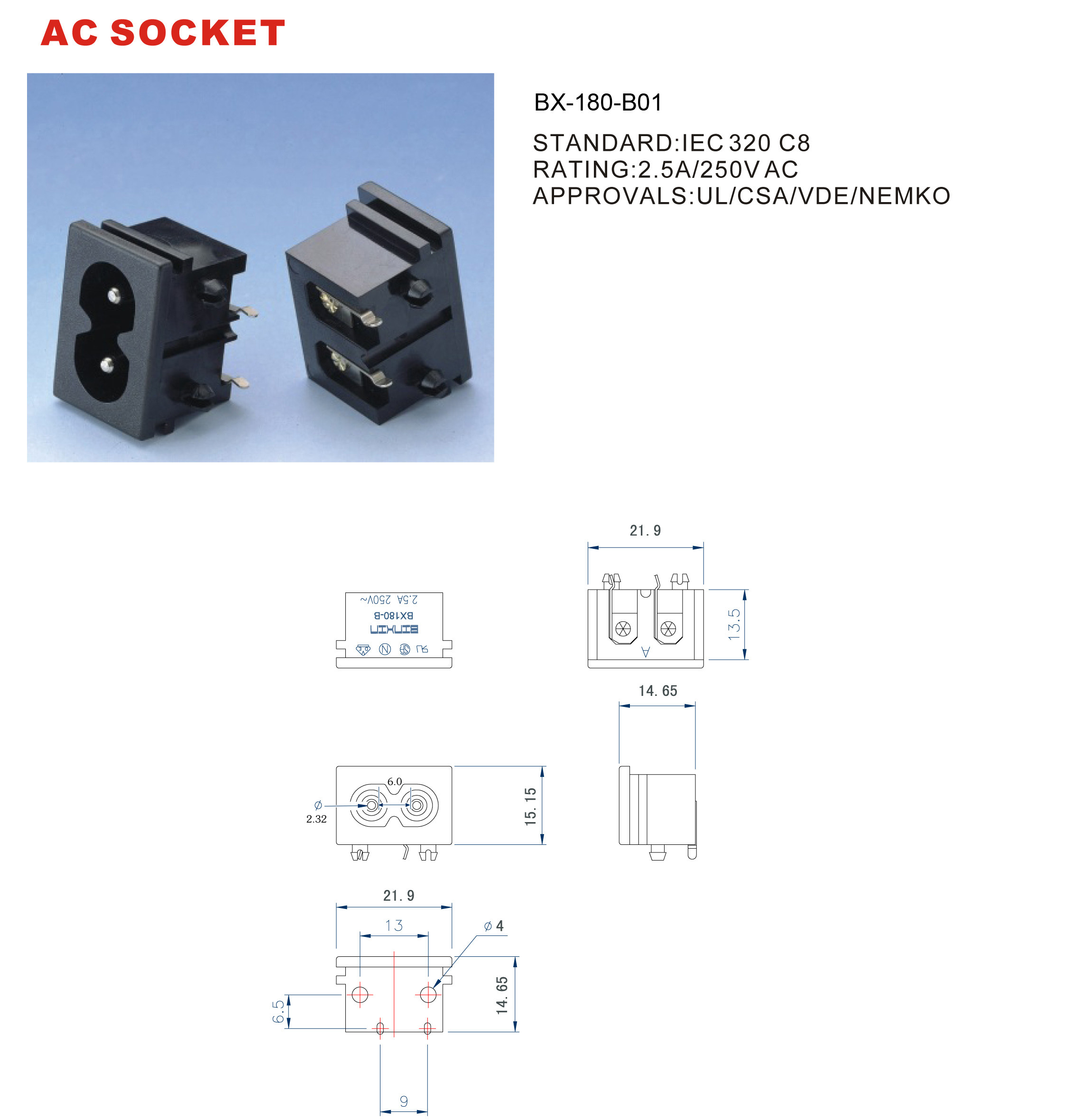 AC power socket 8-character socket plug 2-hole socket 8-character IEC 22*15