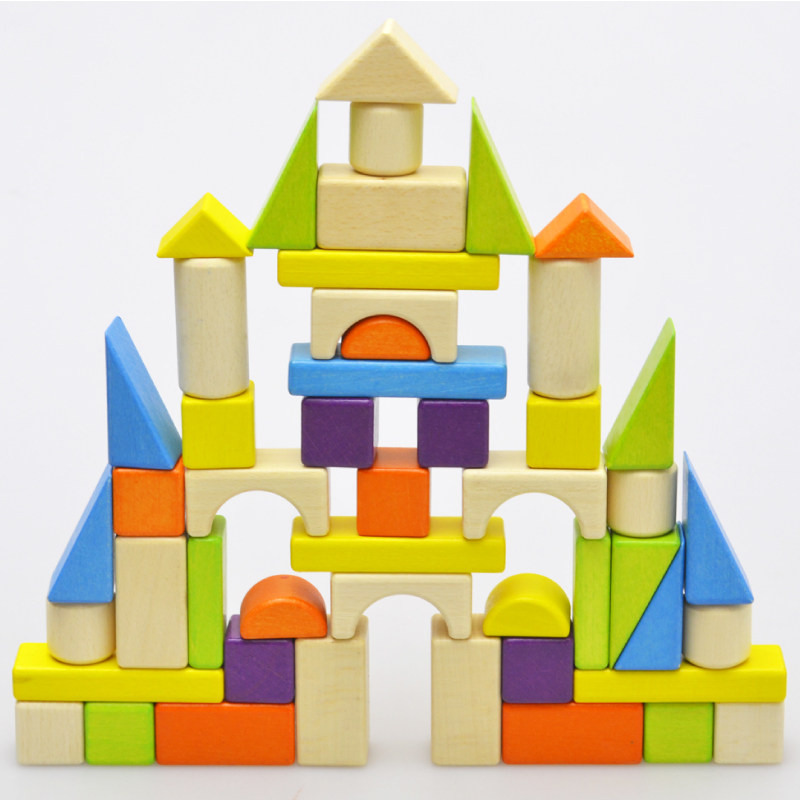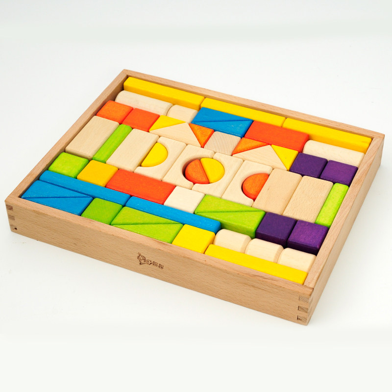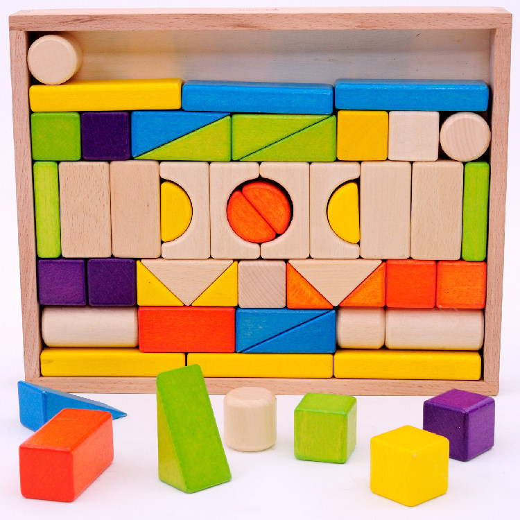 Full beech wood made of 54 Colorful Building Blocks Solid Wood Building Blocks Delivered Gift Canon 3-6-year-old Child Puzzle Early Education Toys