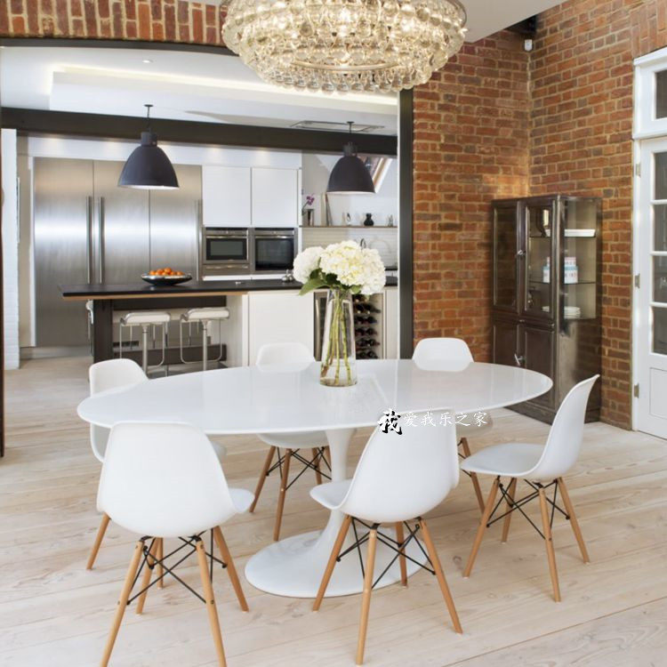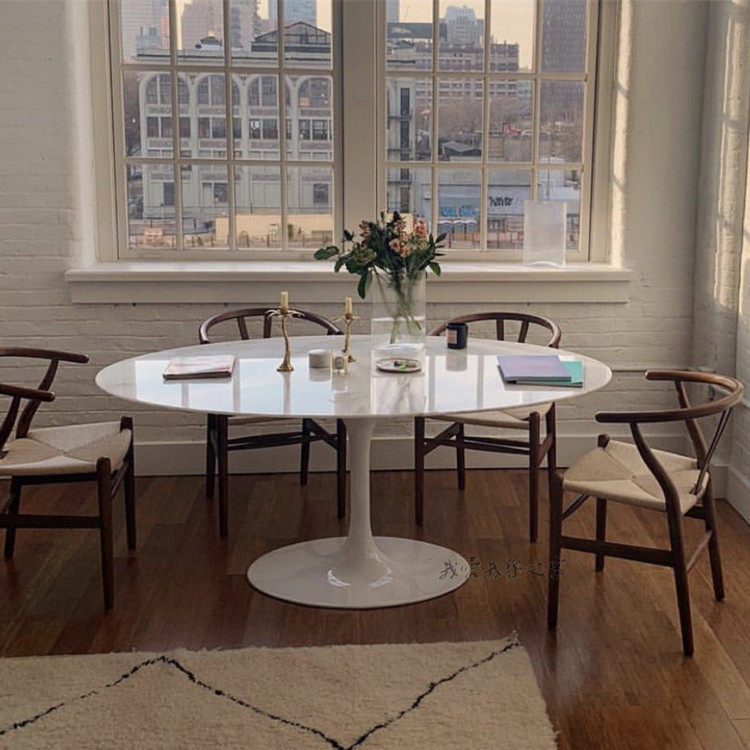 Nordic oval pure white dining table creative 6 people 8 people large dining table personality leisure table art simple paint