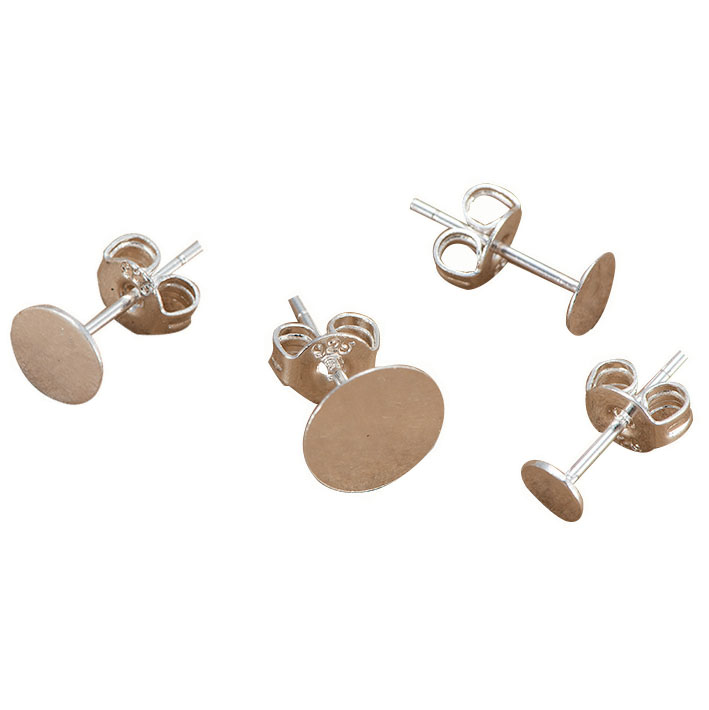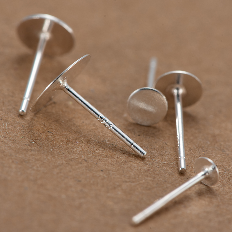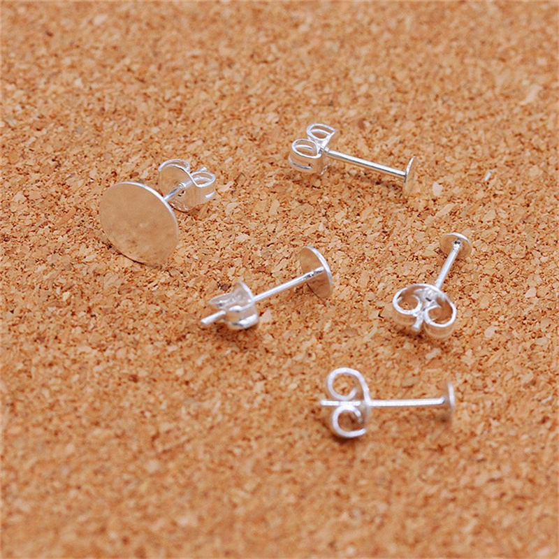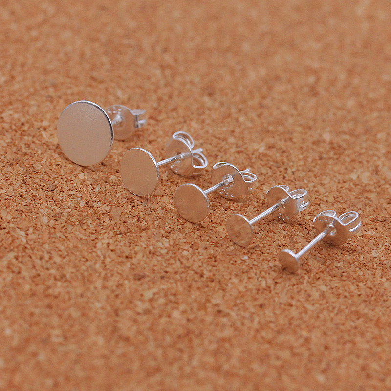925 Silver Ear Pin Earring Accessories 3--8MM Silver Ear Pin Half Silver Ear Stud Flat Head