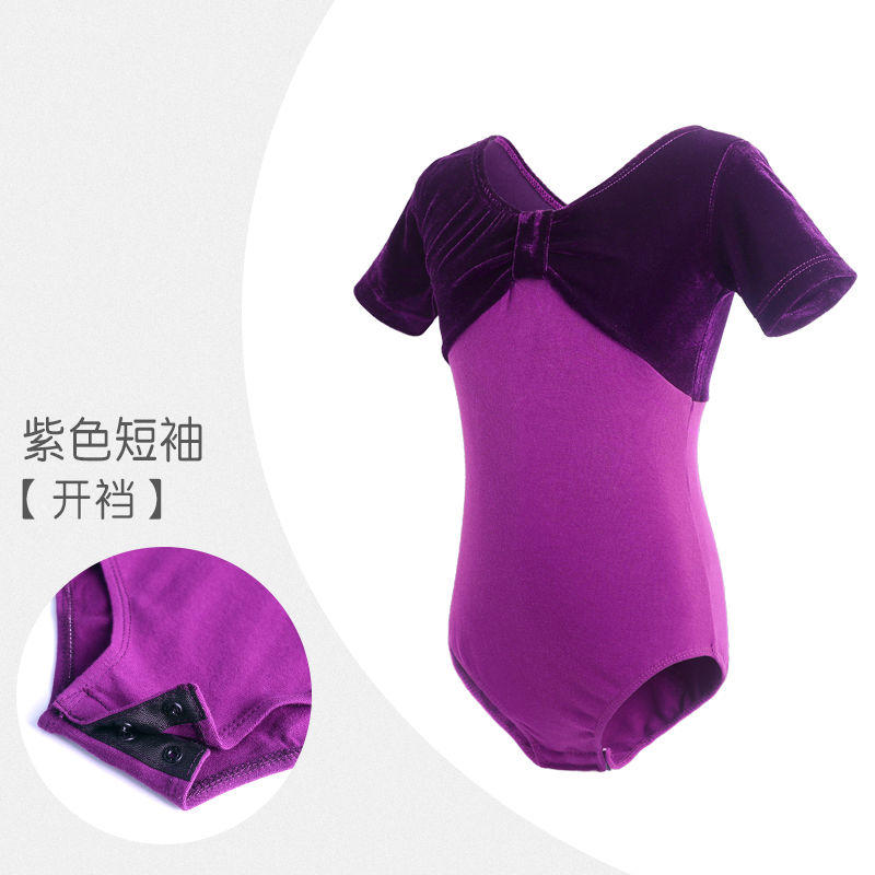 Girls' exercise suits Young children's gymnastics suits Short-sleeved dance costumes Cotton ballet costumes Performance costumes Velvet one-pieces