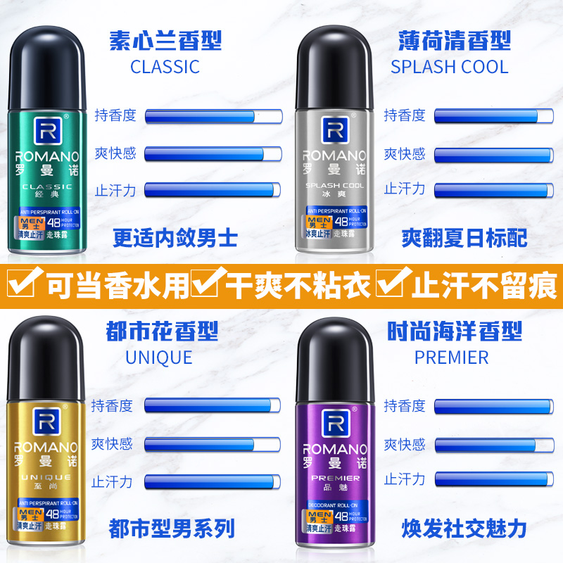 Romano antiperspirant dew drops men's long-lasting fragrance summer refreshing and not greasy under the armpit body odor odor perfume
