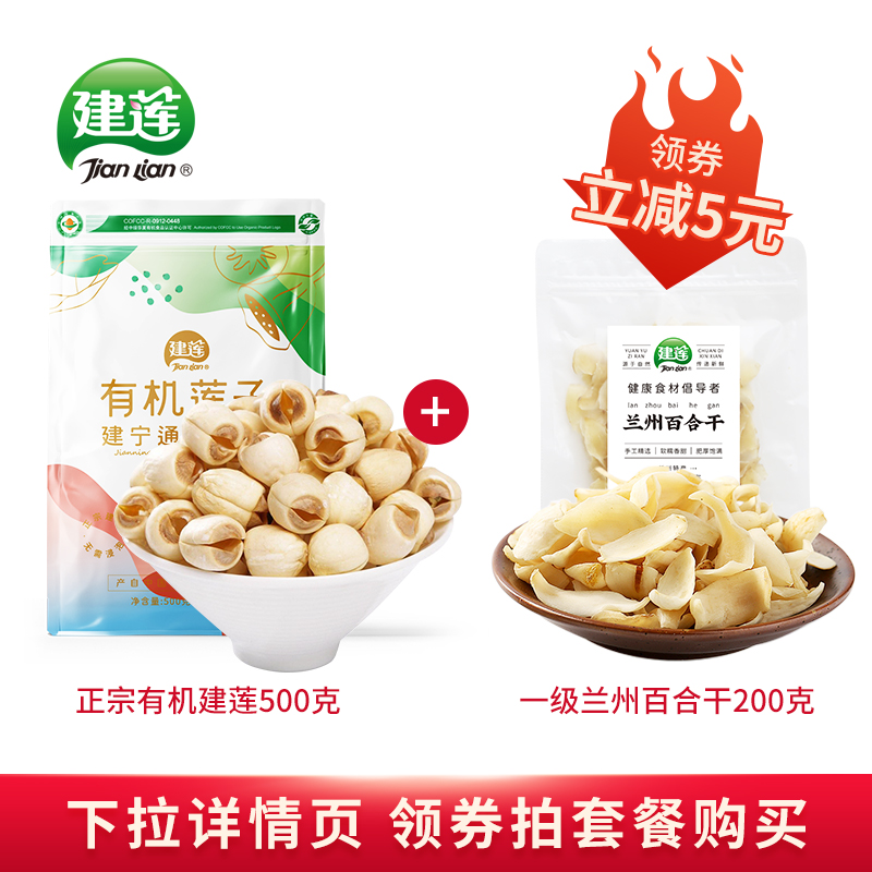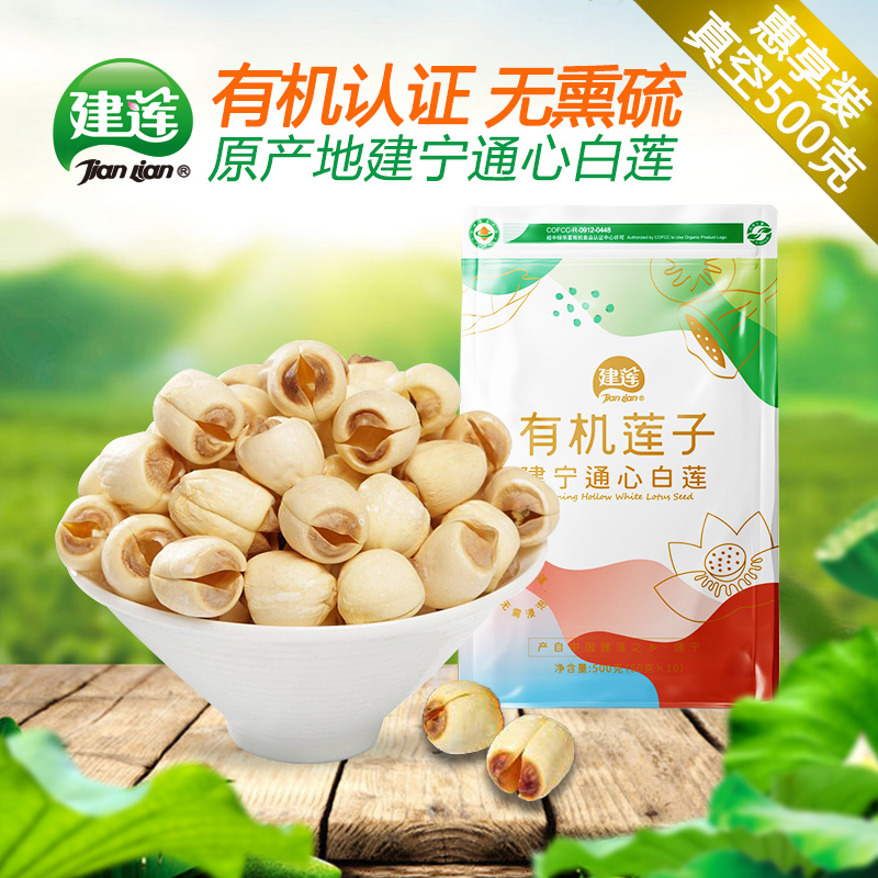 (Organic Jianlian 500g) Jianning White Lotus Official Flagship Store Premium Grade Removed Lotus Seed Rice Dried Goods No Smoked Sulfur