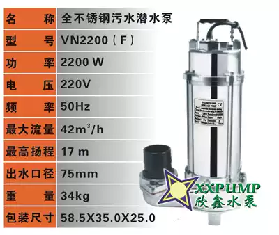 VN2200 full 304316 stainless steel sewage submersible pump corrosion resistant pump chemical pump acid and alkali pump