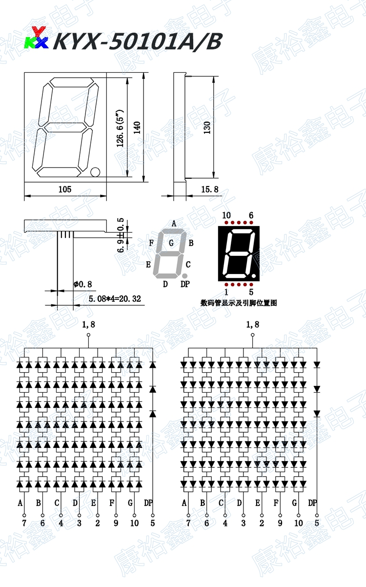 5 inch digital tube KYX-50101AS 50101BS Large size digital tube Digital tube 5 inch