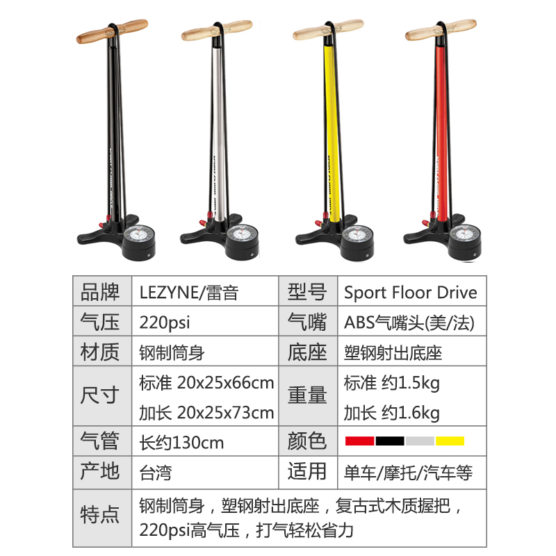 United States LEZYNE Lei Yin mountain road bike high pressure floor standing large pump 220psi US-French mouth