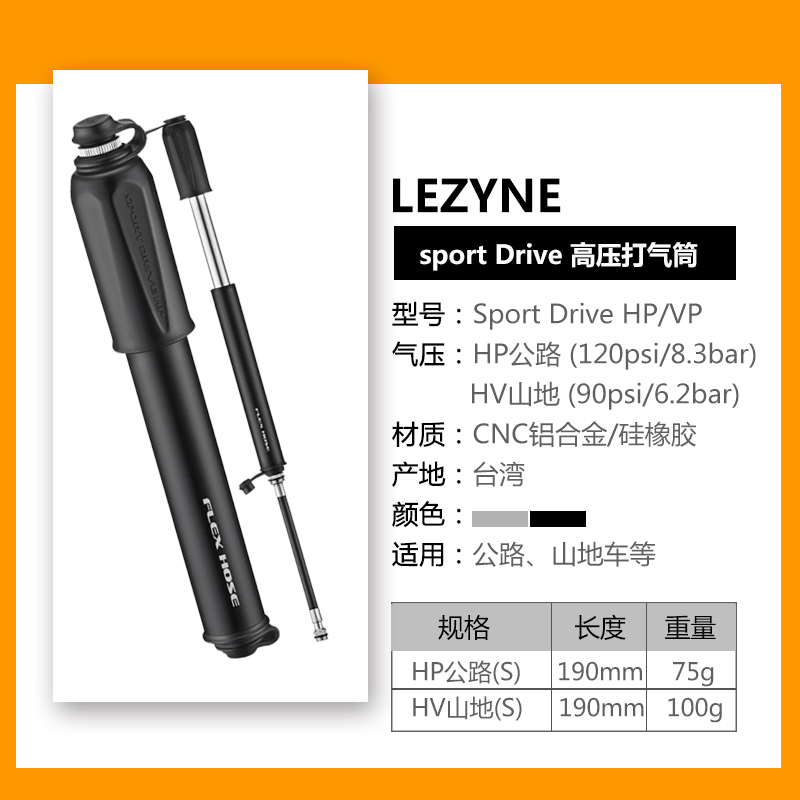 LEZYNE SPORT DRIVE HP Bicycle Portable American French Mouth Mini Pump 120psi