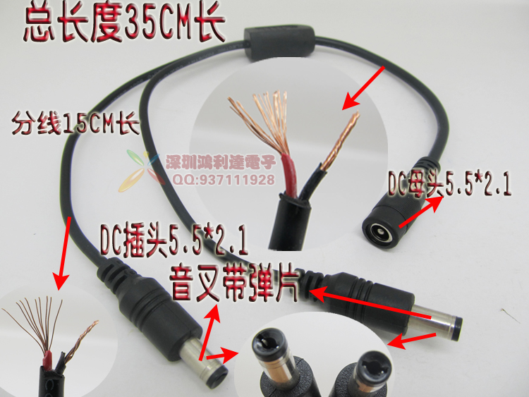 Premium copper wire DC power cord 10% 2 1 drag 2 monitor DC power supply branch line plug 5 5 * 2 1