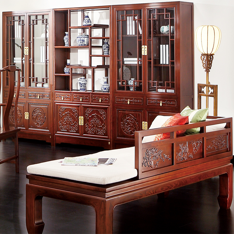 Centennial imprint modern Chinese lawn chair old elm carved casual chair all solid wooden beauty bed library furniture