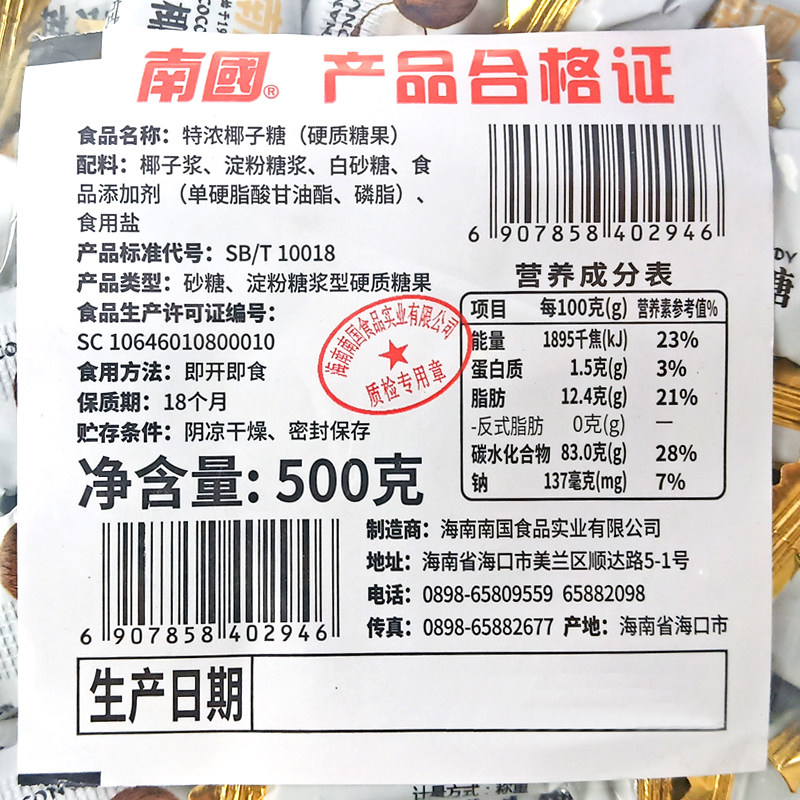Hainan specially produced South Guang special concentrated coconut sugar 500g bulk traditional special authentic coconut milk candy packaging sweets