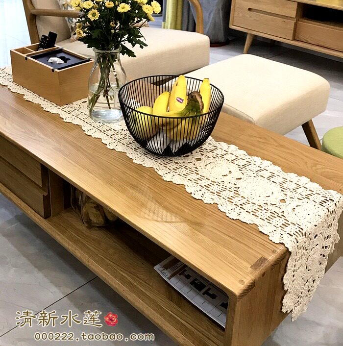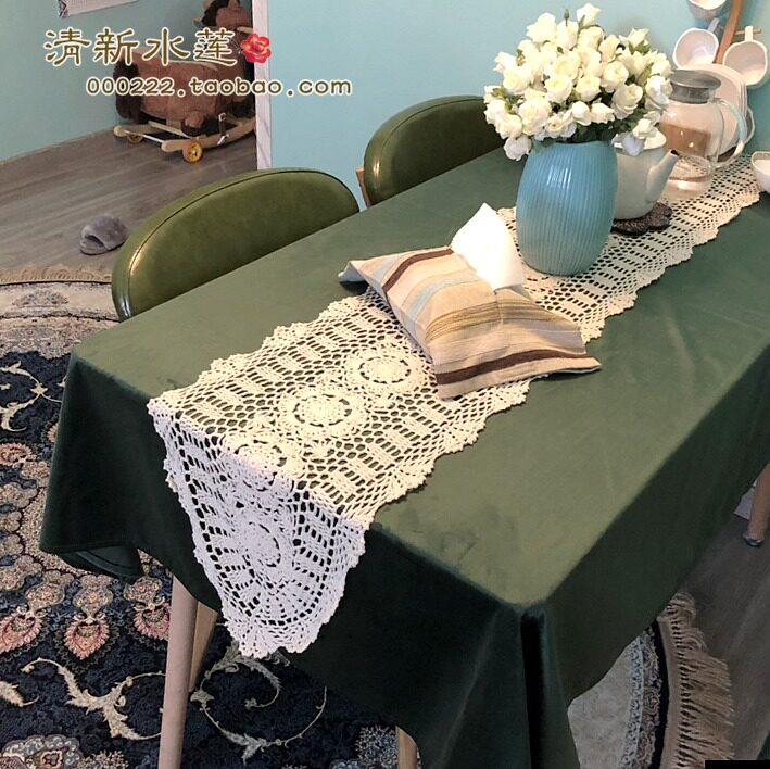 Fresh water lotus hand crochet crochet TV cabinet cover cloth Chinese nostalgic retro cotton hollow woven table flag