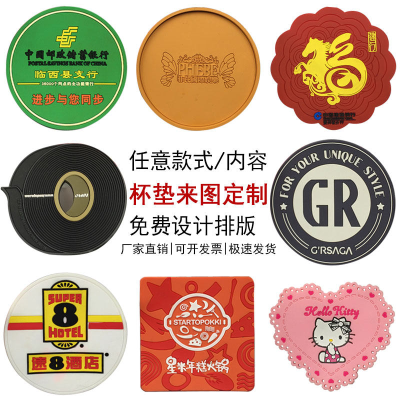 Heat Insulation Silicone Mat Customised Hotel Bar Counter KTV Table Mat Print LOGO Two Dimensional PVC Rubber round Cup mat set to do