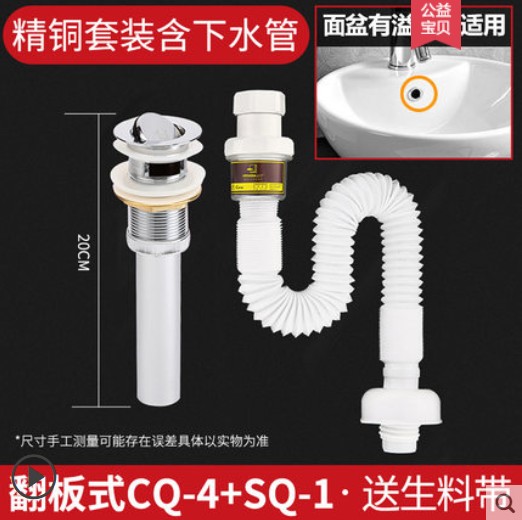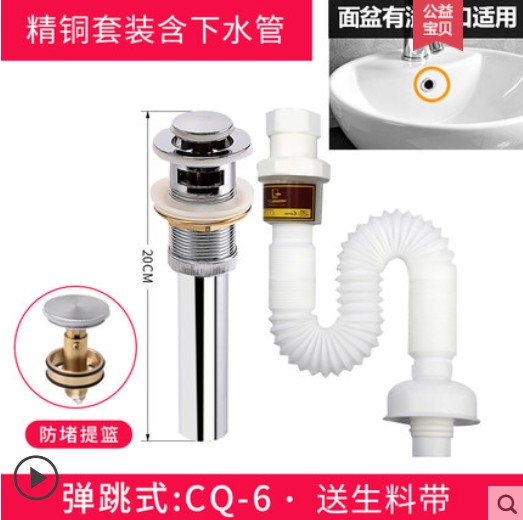 Bath cabinet Closet Basin Washbasin Washbasin Ceramic Basin Pure Copper Clamshell Sewer deodorized Anti-smell anti-insect drain pipe
