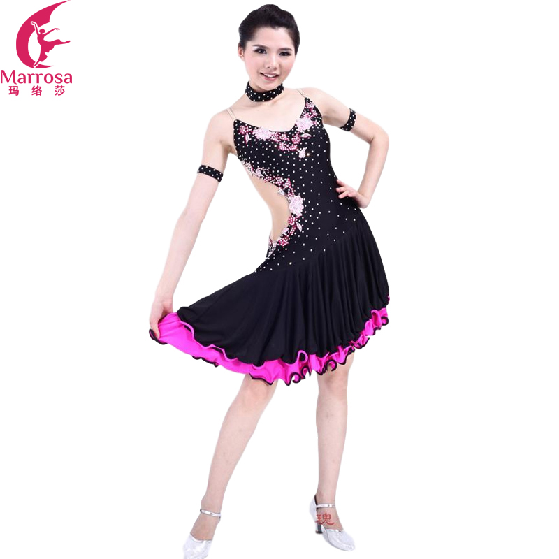 Marrosa Latin Dance Dress V-collar with cake wave dress swing for Latin Show