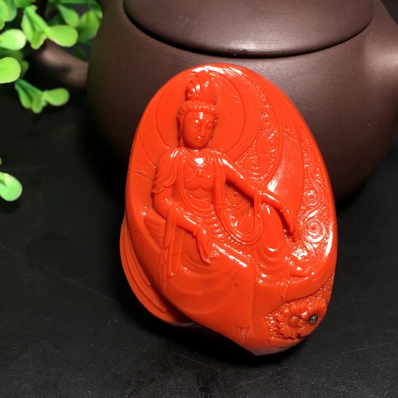 West Yunnan Ruixiang fidelity Baoshan south red agate boutique old south red Guanyin carving pendant male pendant female