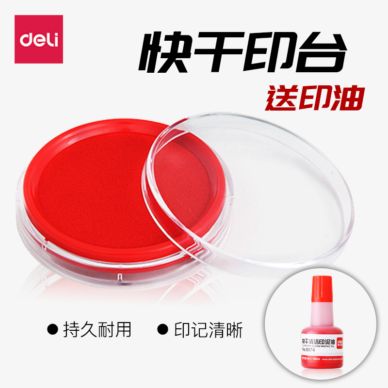 Deli quick-drying printing mud Large printing pad square red blue oily second-dry seal mud Stamp financial press hand Red printing mud Fingerprint office supplies small portable printing oil box black