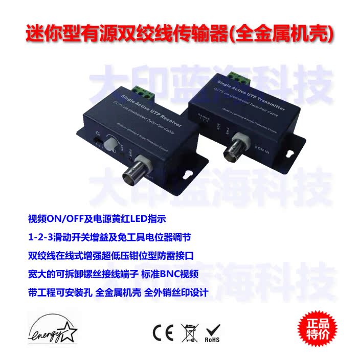 Single - path active film twisted pair transmitter 1500 m film twisted pair receives lightning anti - CCTV closed circuit monitoring