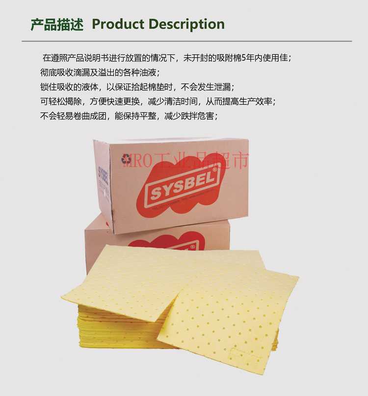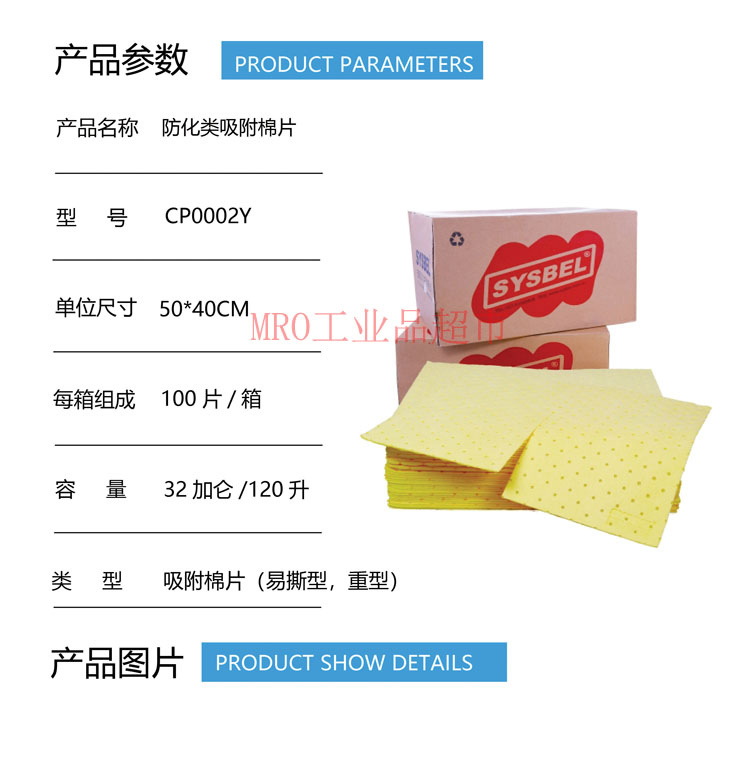 SYSBEL anti-chemical class adsorption cotton sheet CP0001Y strong acid strong base chemicals suction cotton adsorption cotton CP0002Y