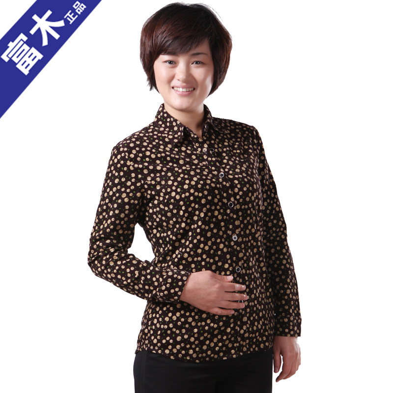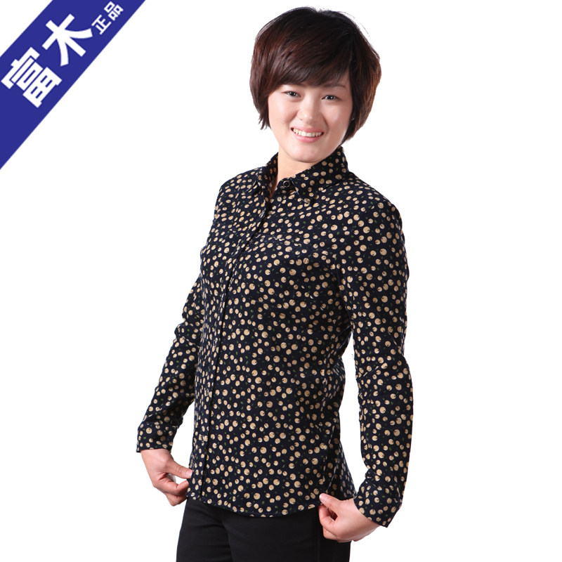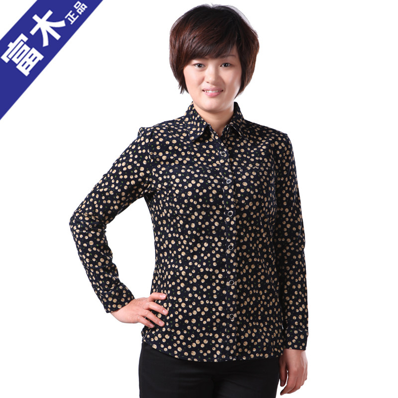 Rich wood MQ-303N new summer long-sleeved floral dot shirt cotton shirt women's middle-aged and elderly