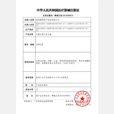 YZB Guangdong 0665-2010 "Portable Oxygen Generator"
