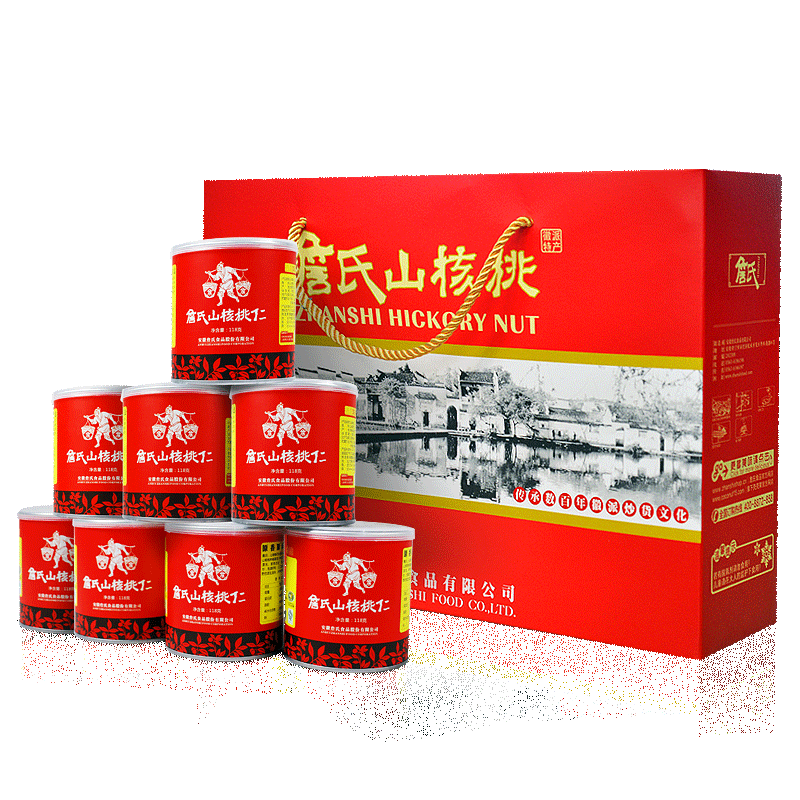 8 red jars of pecan kernels 8 cans of fragrant berries each half of the hickory kernels 8 green jars of sugar-free hickory kernels 8 powder jars of pine nuts each of the 8 powder jars of recreational pecan kernels