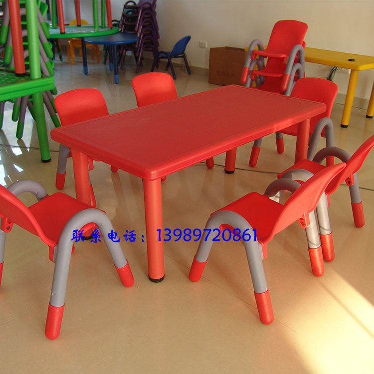 Red rectangular table with thickness 6 beams yellow rectangular table blue rectangular table green rectangular table square table square table with ordinary backing chair