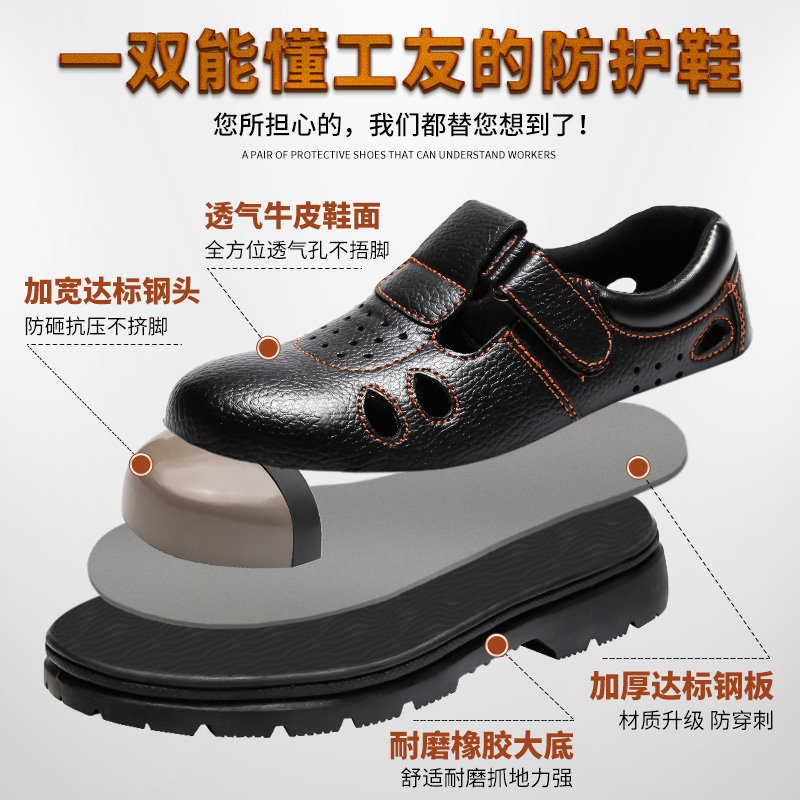 Labor insurance shoes men's summer breathable deodorant old insurance work steel Baotou anti-smashing anti-puncture lightweight construction site summer sandals