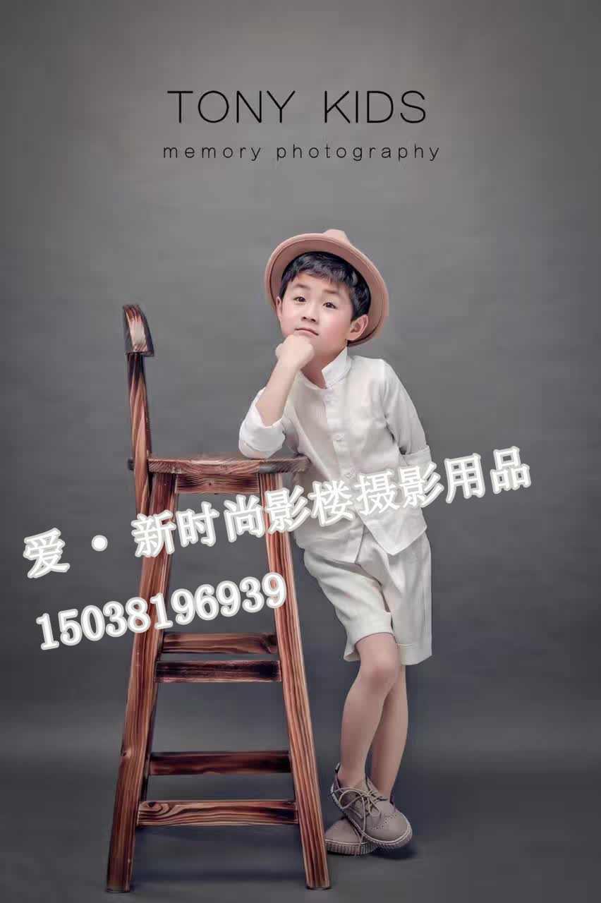 Korean wedding photo retro old solid wood bar chair window decoration solid wood stool bar chair back chair