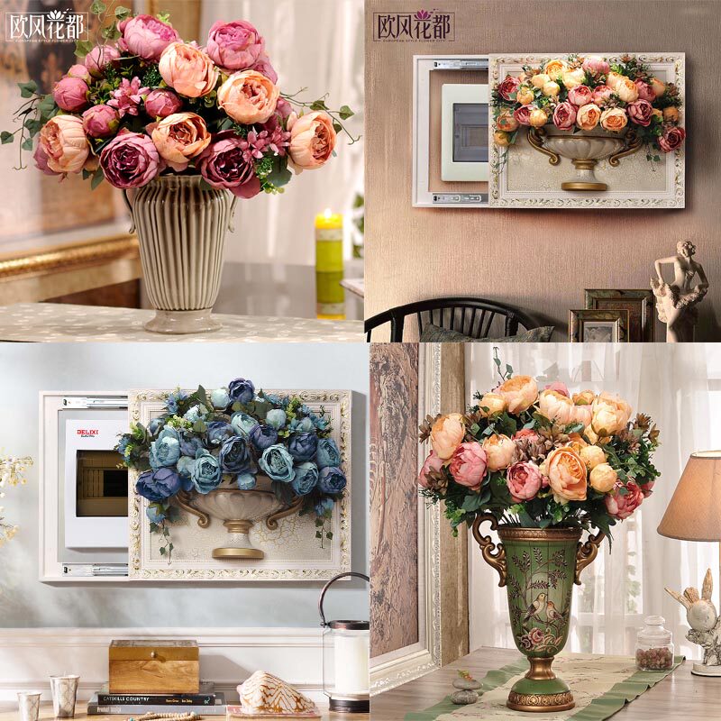 Nature Green Natural Pink Nature Champagne Natural Blue Peacock Blue Natural Purple Retro Made Old White Vase Champagne Peony 2 Bundles Retro Made Old White Vases Pink Peony 2