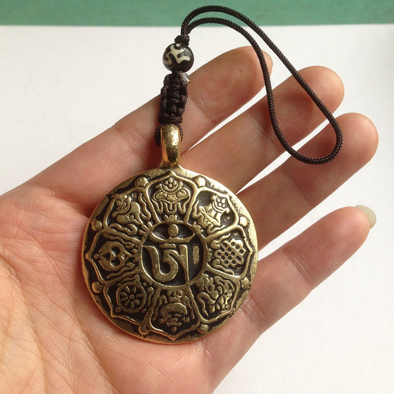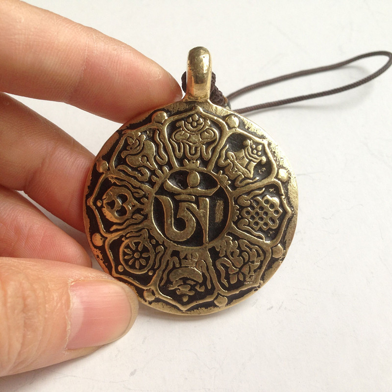 Nepal Tibetan brass nine palace Bagua zodiac waist card amulet auspicious eight treasures