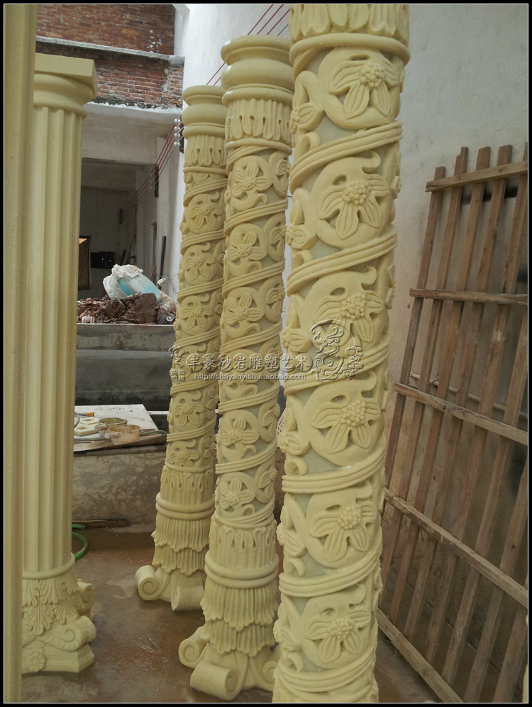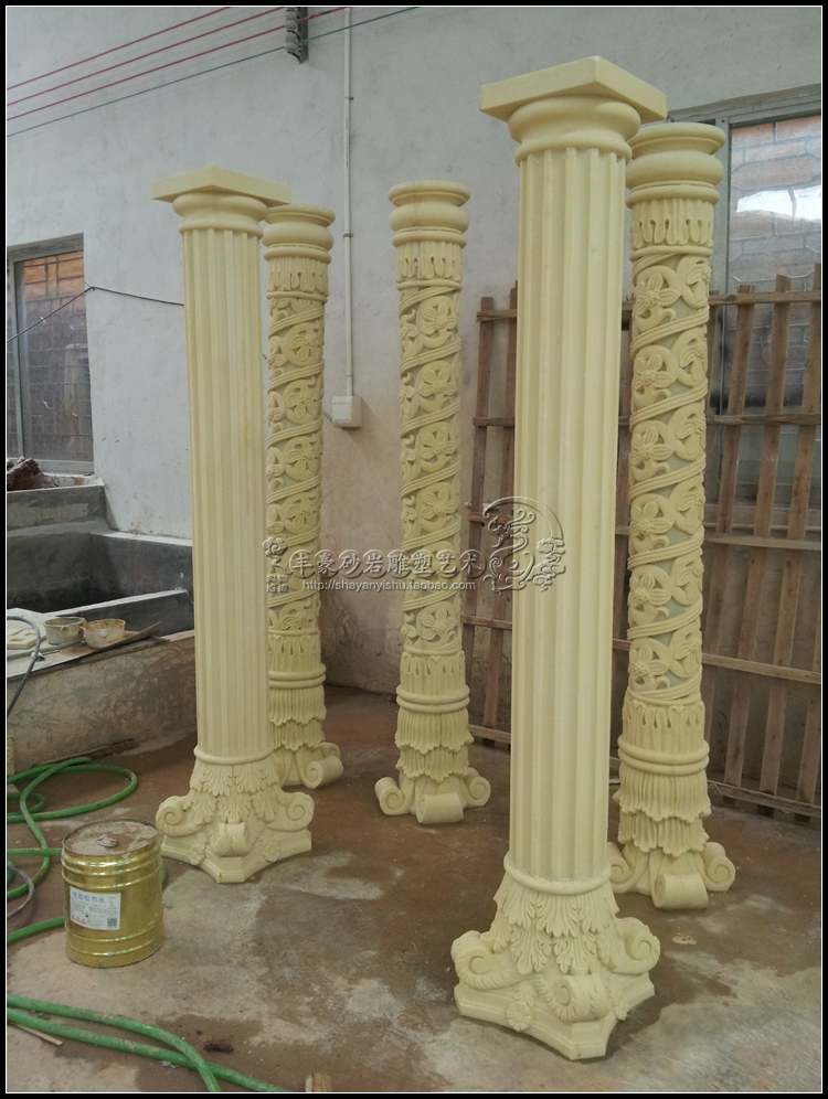 Fenghao sandstone background wall relief mural garden sculpture water spray Roman column Z027 transparent hollow column