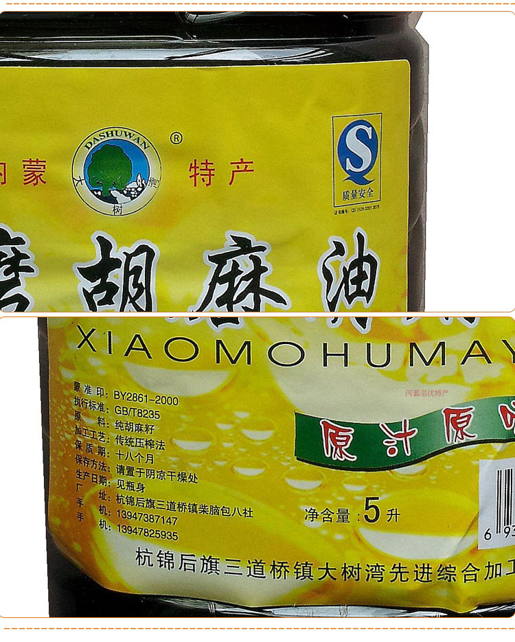 Nemon River Sleeve Large Tree Bay Small Grindle Pure Hooded Sesame Oil Moon Oil Cooking Oil Linseed Oil Cold Squeeze 5 Liters