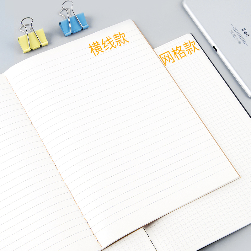 Guangbo kraft paper notebook book Simple ins wind horizontal line A5 grid book 16K record book Big homework book soft copy B5 notes College students use book horizontal grid exercise book