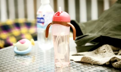 Pigeon baby imported from Japan learns to drink penguin cup for children