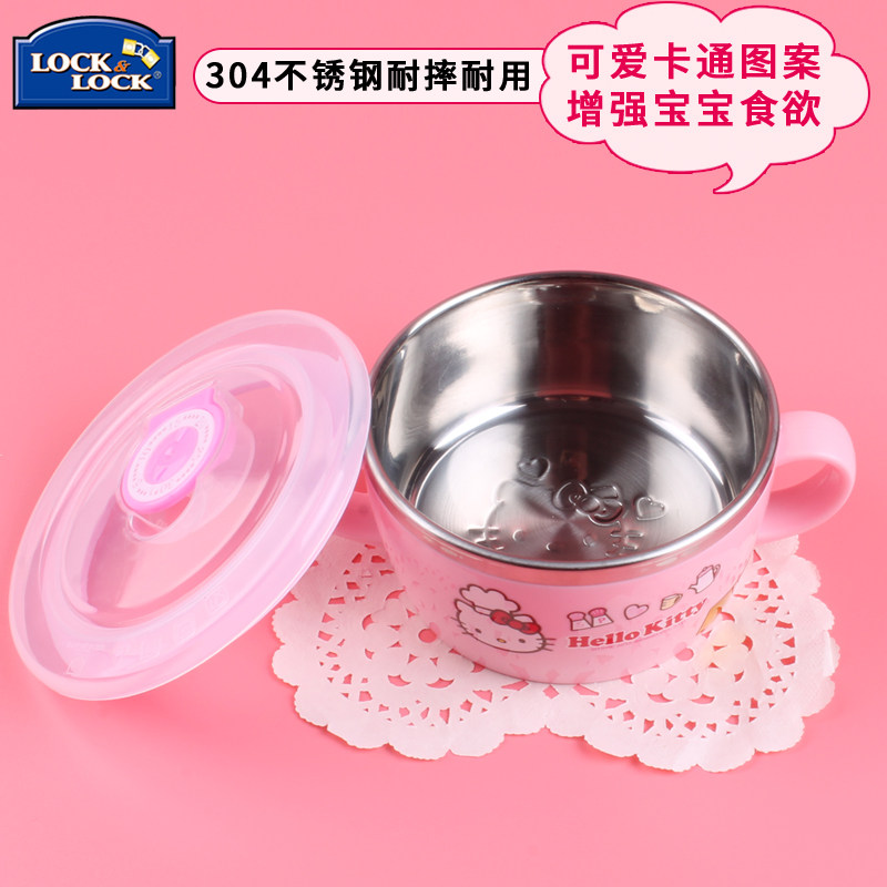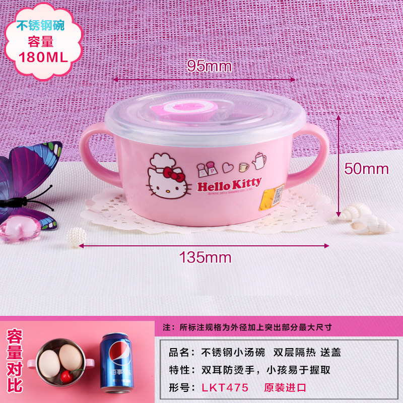 Music Buckle Music Buckle Stainless Steel Dining Bowl Meal Kitty Cartoon Children Double Ear Heat Insulation Student School Double Handle Soup Bowl