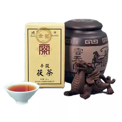 Hunan Anhua black tea high quality black hair tea ancient method made Yuntian Pavilion hand building gold flower brick tea 400g Spring Spring