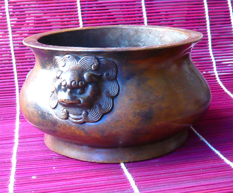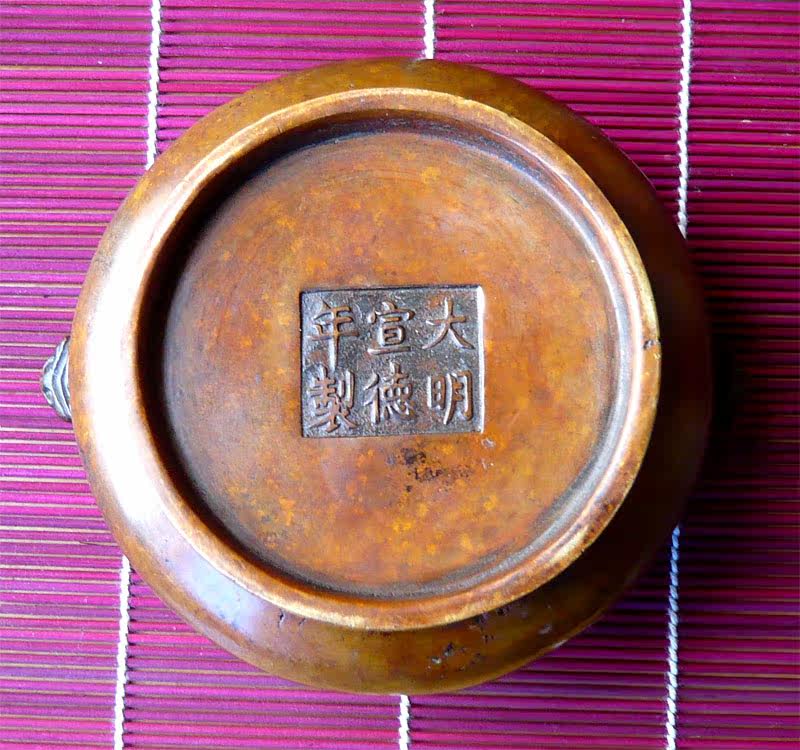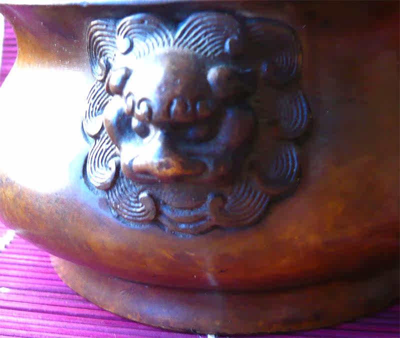 Pure bronze incense stove with high imitation lion head double-ear big Ming Xuande stove