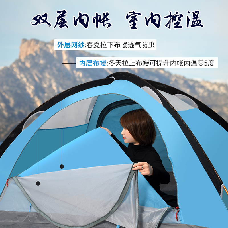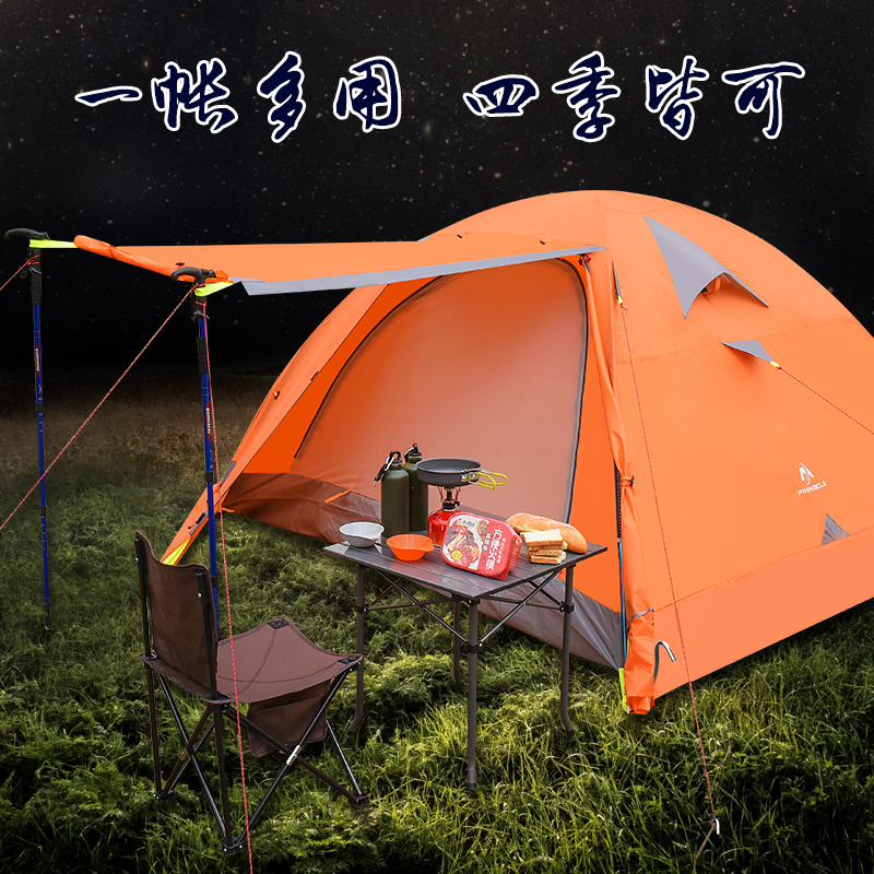 PINNACLE Outdoor Camping Tent Double aluminium bar 2 persons 3-4 persons Anti-torrential rain Field camping tent thickened