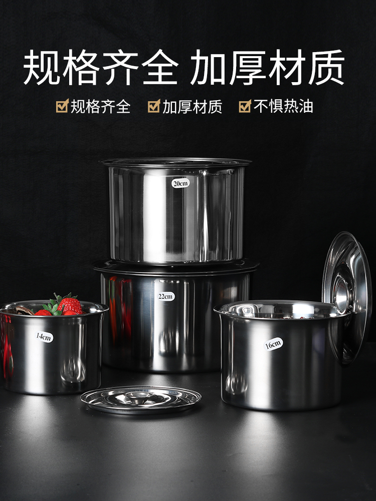 Milk tea shop thickened stainless steel flavor cup seasoning pot kitchen round egg pot stew pot seasoning oil pot seasoning with cover