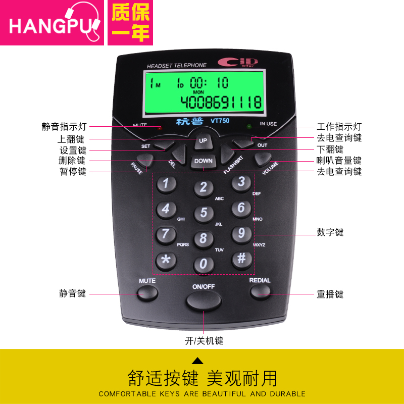VT750 single seat machine VT750 cable phone Q501 single ear headphone = RMB119 (original dress standard) VT750 wired phone Q502 dual ear headphones = 13