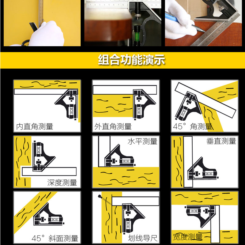 Leopard multifunction mobile combined angle ruler 300mm stainless steel horizontal active angle ruler 45 degrees right angle inflection