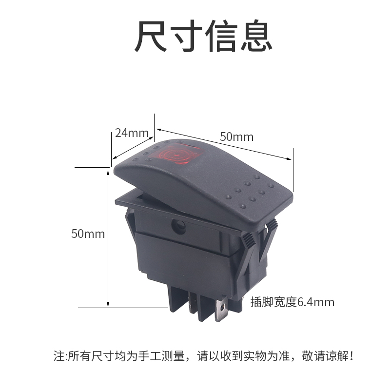 Button rocker switch RK1-06 boat-shaped button with red light black 2-way 4-foot 2-gear high power 16a two tranches