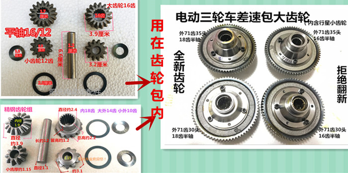 Electric Tricycle Accessories Differential Motor Gear Differential Wrap Gear Differential Box Gear Rear Axle Umbrella Teeth Gear Set