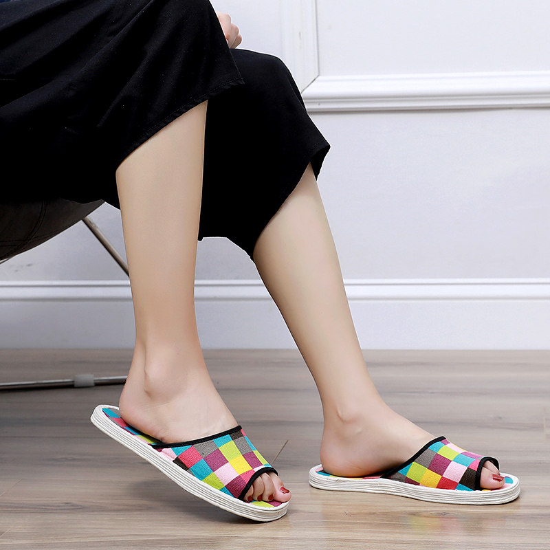 Cloth-soled slippers women's summer home home one-word sandals and slippers female students comfortable mute cloth shoes Melaleuca bottom floor mop