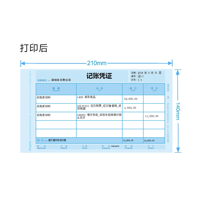 Kingdee Magic KP-J101 Laser Amount Accounting Voucher Printing Paper Set Paper 210*140mm Accounting Voucher