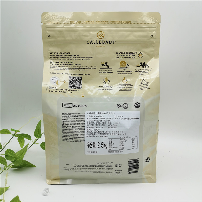 Jialibao white chocolate bean 28% white grain 25kg Belgium imported baking raw materials agent sales