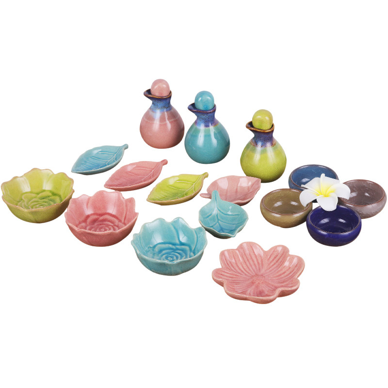 Leaf DishCyan Leaf DishRed Leaf DishYellow Leaf BottleBlue Plum DishGreen Plum DishBlue Plum DishPurple Plum DishRed Melon Seed DishRed Melon Seed DishBlue Melon Seed DishGreen Essential Oil BowlPink